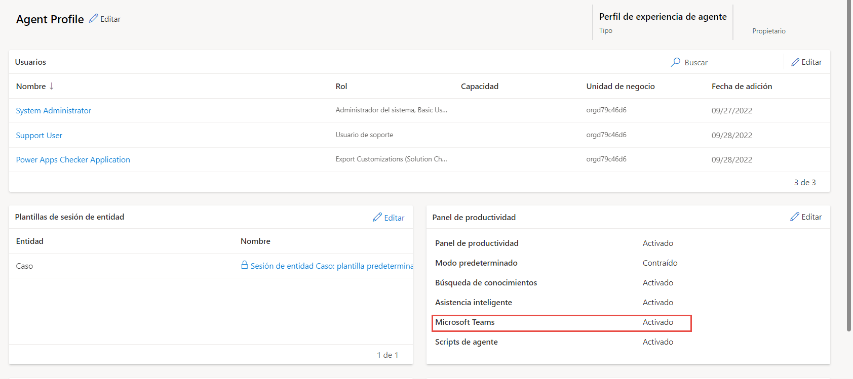 Cuando haya habilitado el chat de Teams, deberá estar disponible para cualquier representante de servicio que acceda a él. Puede controlar las características que desee que estén disponibles para los representantes de servicio mediante los perfiles de experiencia de agente de servicio. Estos perfiles de experiencia de agente le permiten crear experiencias de aplicaciones específicas para representantes y supervisores, y constituyen una alternativa a crear y mantener aplicaciones personalizadas. Para obtener más información, consulte Perfiles de experiencia de agente.
