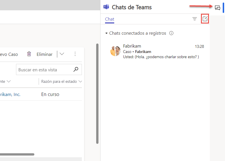 Después de configurar la característica de chat de Teams, los representantes de servicio pueden usarla mientras trabajan en los registros de los clientes. Puede iniciar un nuevo chat o vincular una conversación de chat existente a un registro de Dynamics 365 sin salir de la aplicación. Vincular los chats asociados a un registro puede ayudar a mantener todas las conversaciones que están relacionadas con el registro en un solo lugar.
