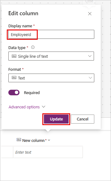 EmployeeIdy seleccione Actualizar.