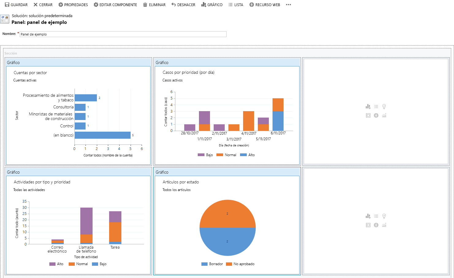 Captura de pantalla con un ejemplo de componentes de visualización con gráficos