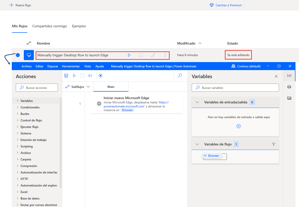 Power Automate para escritorio se abre en el flujo de escritorio que ha seleccionado.