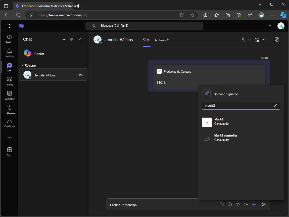 En la lista de aplicaciones, seleccione Productos de Contoso para abrir la extensión de mensaje.