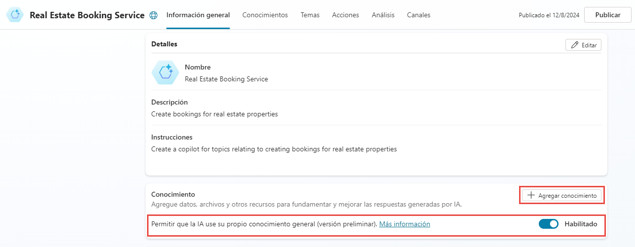 Explore el agente y vea cómo utiliza los distintos orígenes de conocimiento.