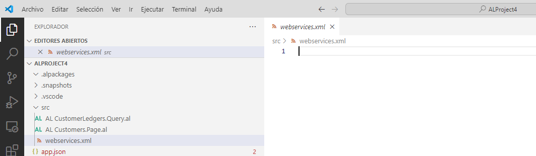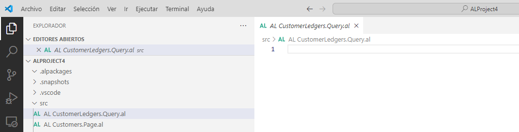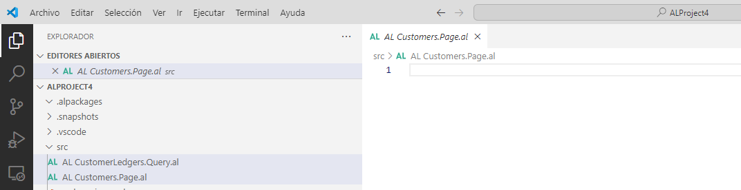 En Visual Studio Code, agregue al proyecto un nuevo archivo .al y asígnele el nombre