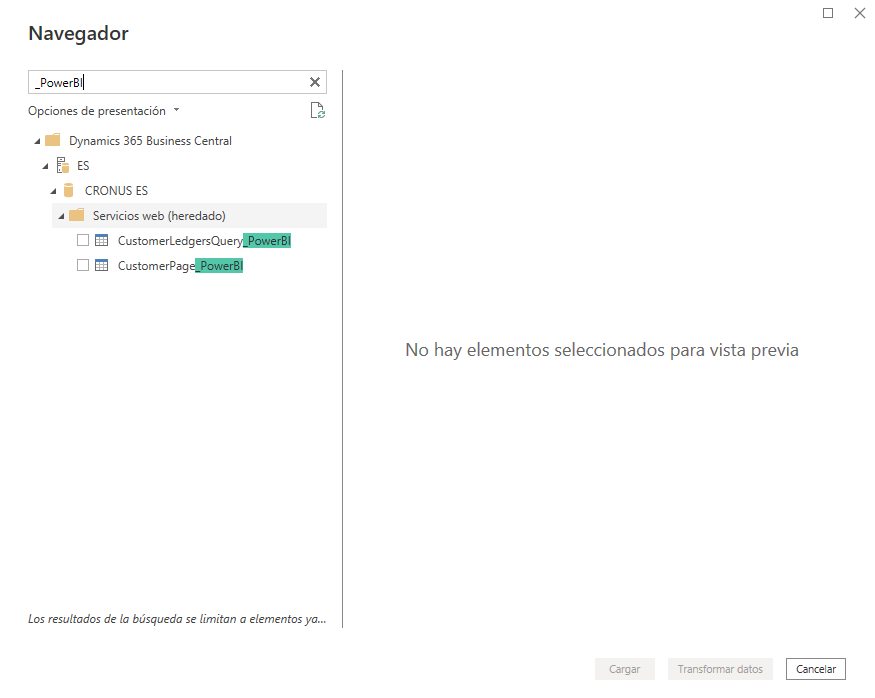 Como se explicó en la unidad anterior de este módulo, Usar Business Central como origen de datos en Power BI, ahora puede usar Power BI Desktop y ver estos nuevos servicios web y API con el Conector de Business Central para Power BI.
