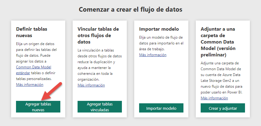En el espacio de trabajo de Power BI, seleccione Nuevo, Flujo de datos.