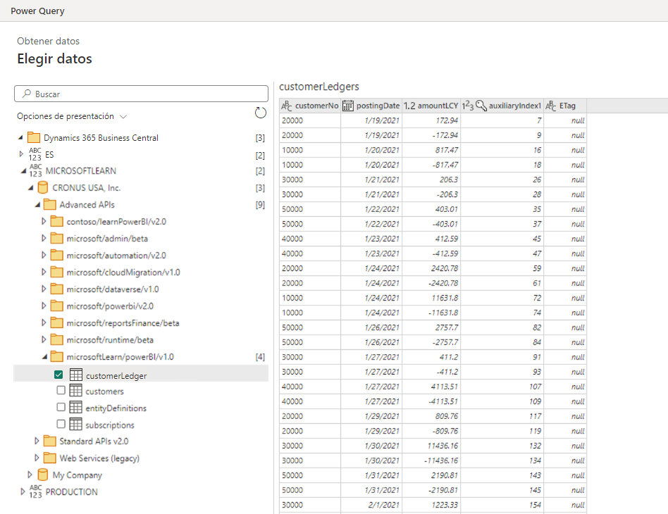 En la unidad anterior, hemos visto cómo desarrollar objetos de página API y de consulta API. Power BI puede conectarse a los servicios web de Business Central e importar los datos.