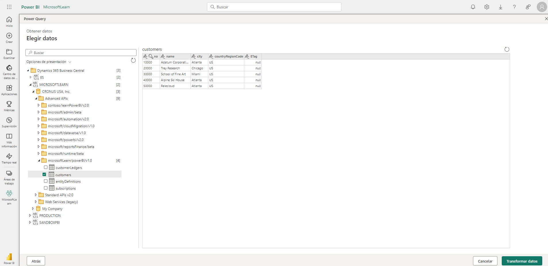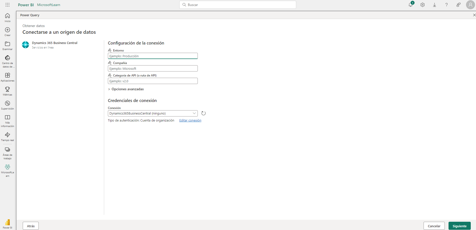 Para crear un flujo de datos de Power BI que se conecte a datos de Business Central, siga estos pasos:
