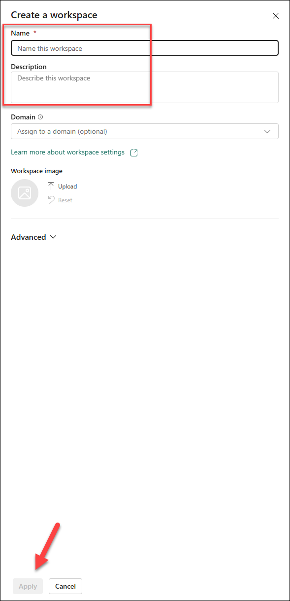 Introduzca un Nombre de espacio de trabajo y seleccione Guardar.