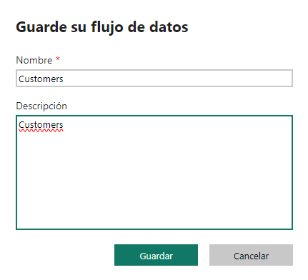 Asigne un nombre al flujo de datos, por ejemplo, Clientes: