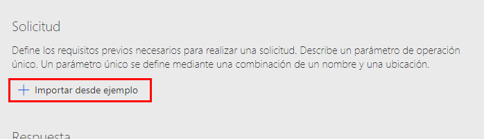 Vaya a la sección Solicitud y seleccione + Importar desde ejemplo.