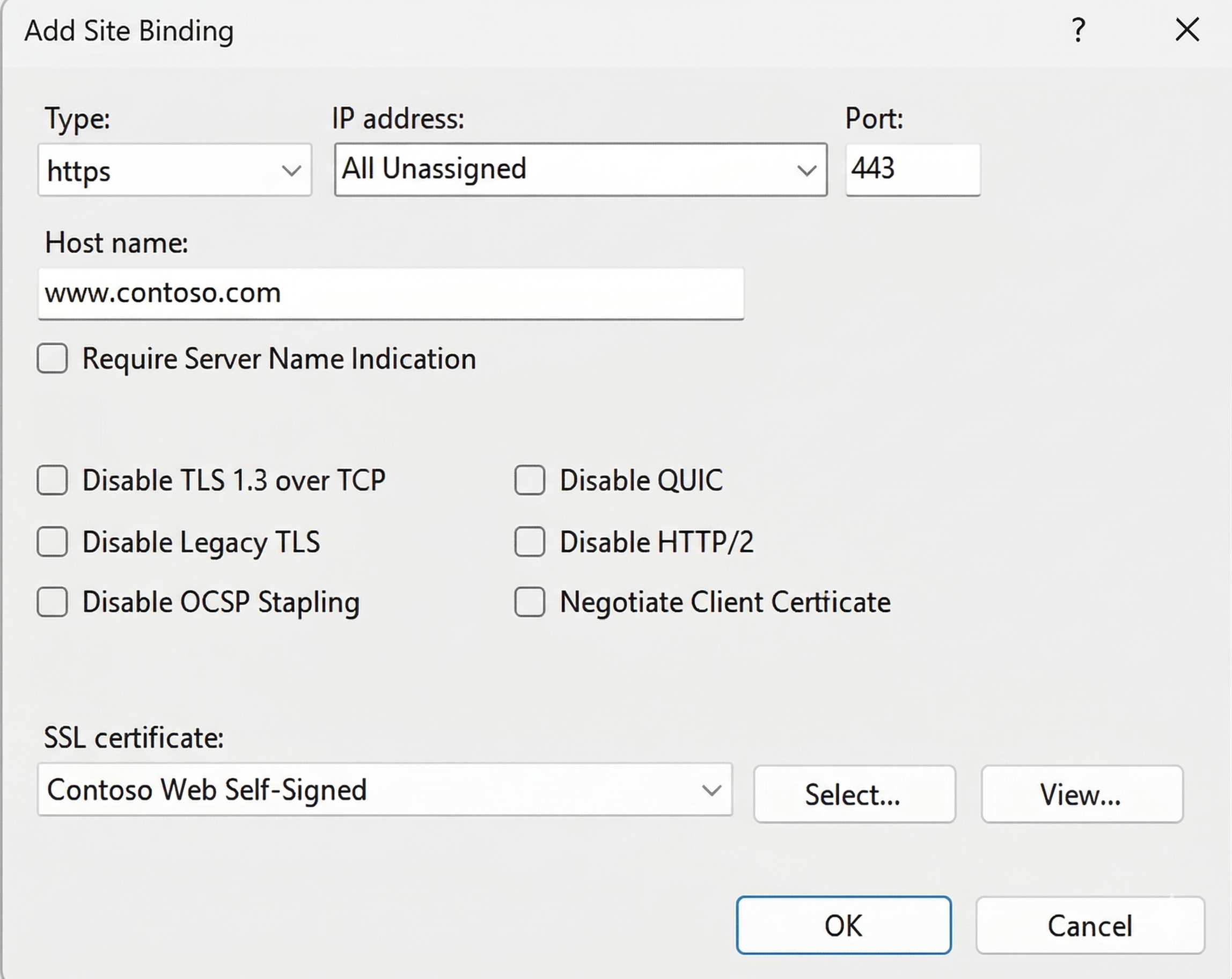 La implementación del rol de servidor web crea un sitio web denominado Sitio web predeterminado. Este sitio usa la ruta de acceso C:\inetpub\wwwroot como raíz de contenido y escucha en el puerto 80 (http) en todas las direcciones IP configuradas para el servidor. El sitio web predeterminado también tiene un enlace de nombre de host vacío, lo que significa que responde a cualquier nombre de host en la dirección IP de ese servidor. Esto sigue produciéndose a menos que configure un sitio adicional, especificando un nombre de host para el mismo puerto.