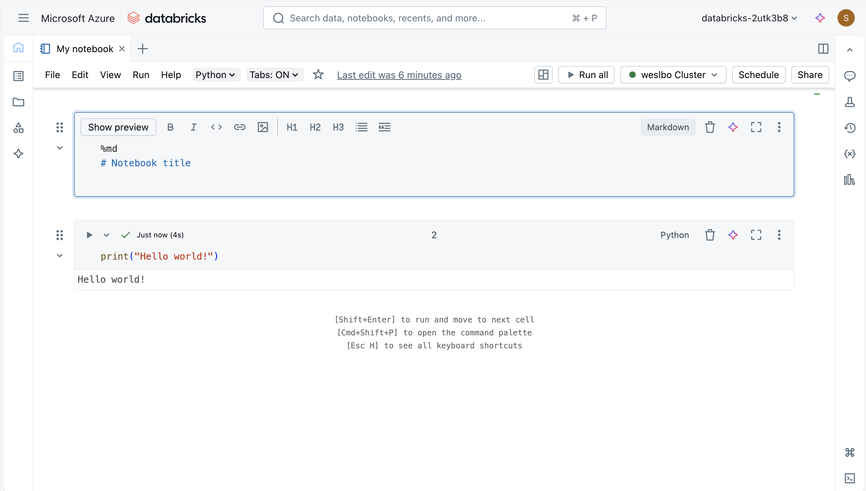 Los cuadernos también están diseñados para la colaboración: varios usuarios pueden editar y ejecutar celdas simultáneamente, agregar comentarios y compartir información en tiempo real. Se integran estrechamente con clústeres de Databricks, lo que permite a los usuarios procesar grandes conjuntos de datos de forma eficaz y pueden conectarse a orígenes de datos externos a través del Catálogo de Unity para el acceso controlado a los datos. Además, los cuadernos pueden controlarse por versiones, programarse como tareas o exportarse para compartir fuera de la plataforma, lo que los convierte en fundamentales para los flujos de trabajo de exploración ad hoc y de nivel de producción.