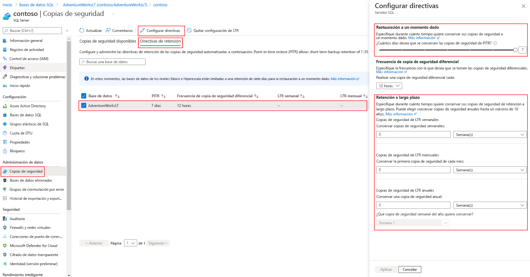 Azure proporciona funcionalidades de copia de seguridad y restauración sin problemas para SQL Database. Estas son algunas características clave: