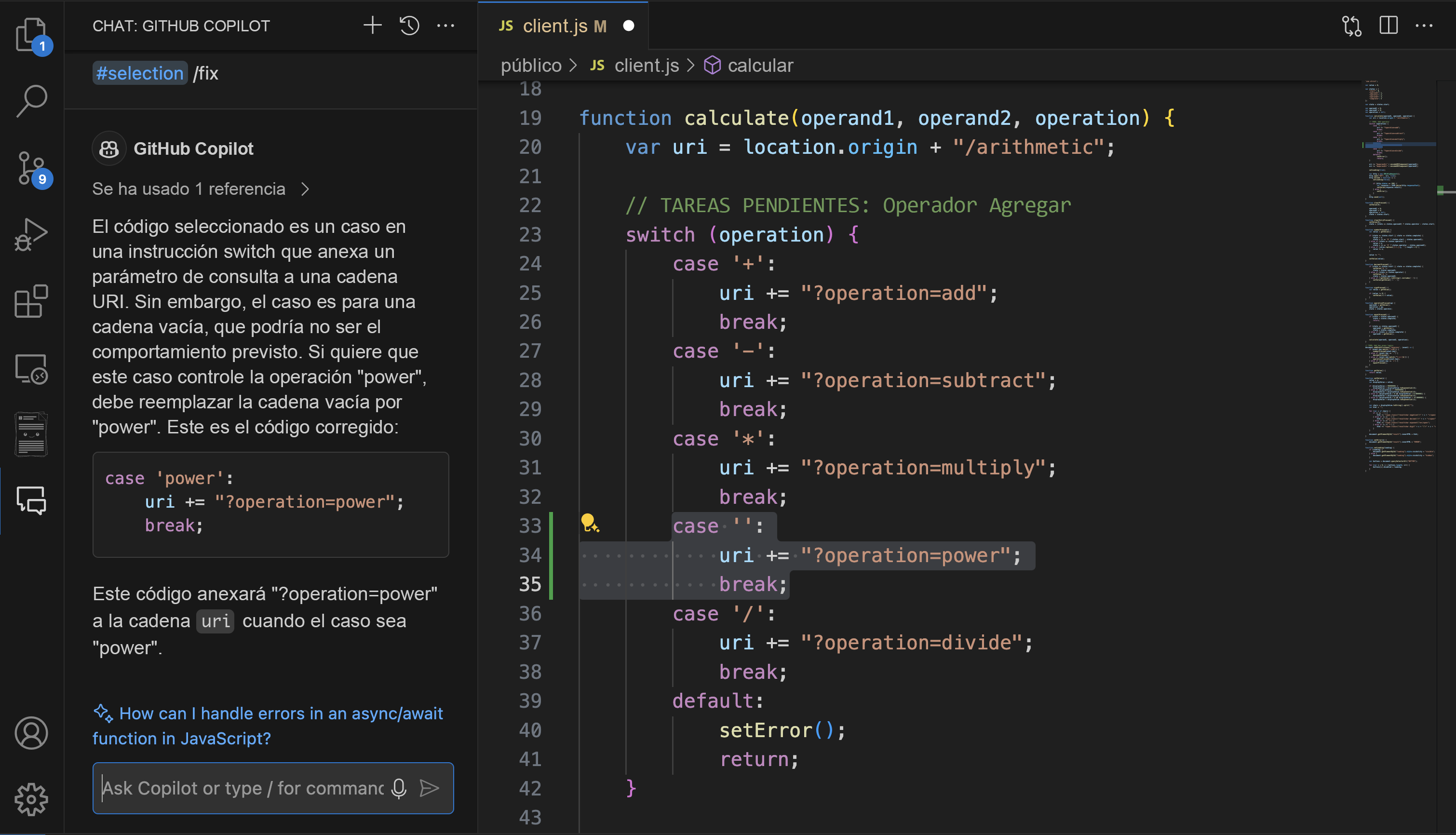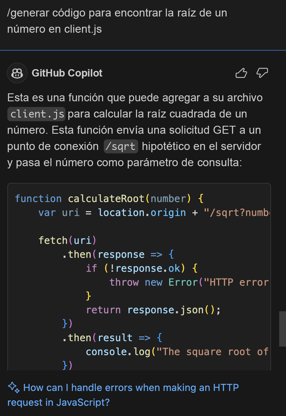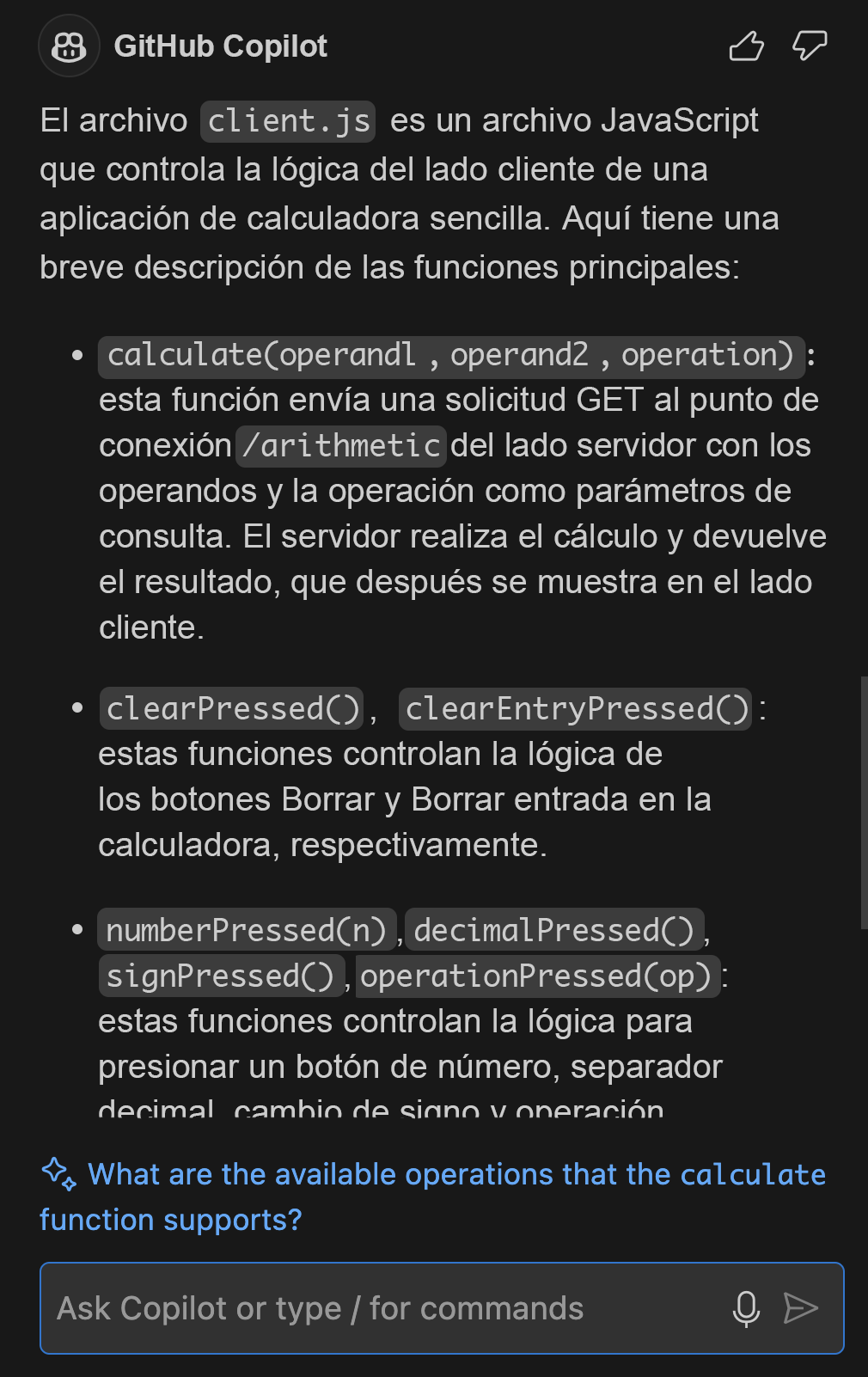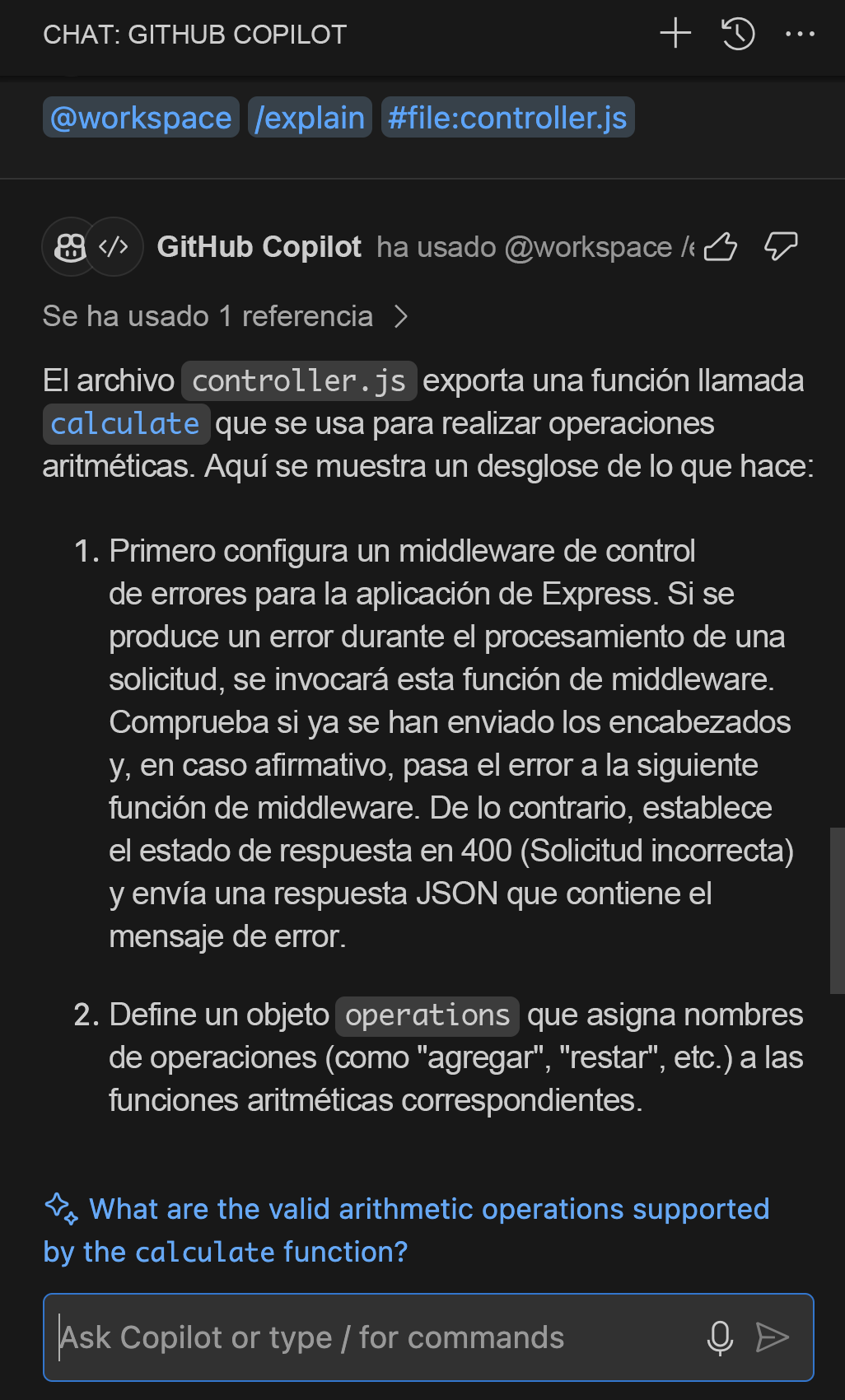 - Obtención de explicaciones sobre el código mediante el chat de GitHub Copilot.