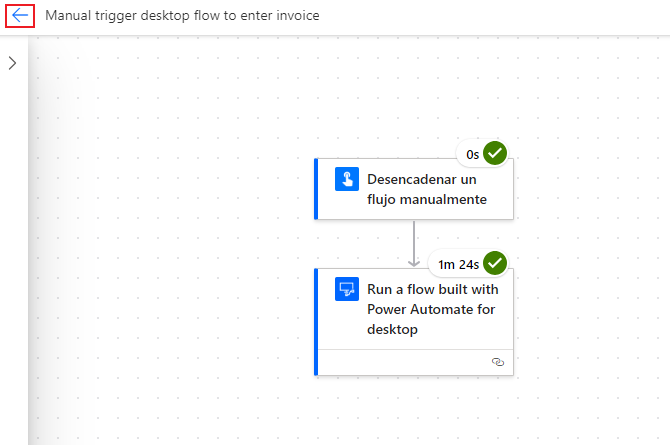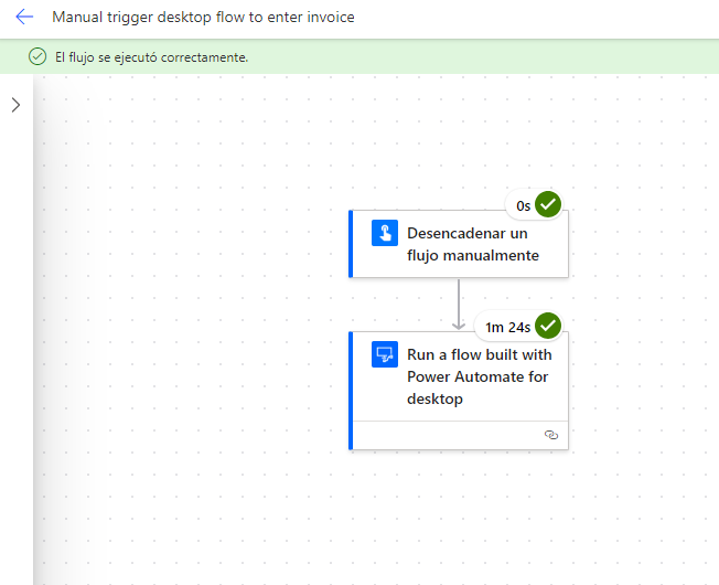 Cuando el flujo se haya ejecutado correctamente, se mostrará la página de detalles de la ejecución.