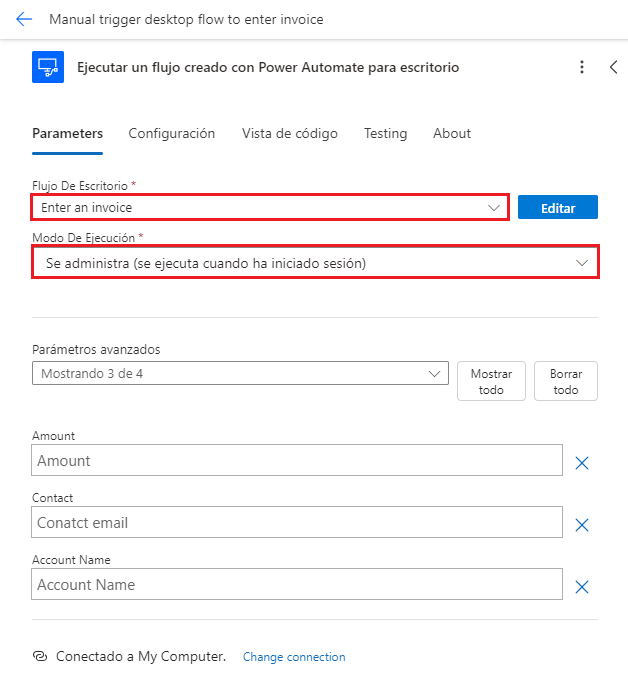 Observe cómo se desencadena el flujo de escritorio desde la nube y se ejecuta en el escritorio.