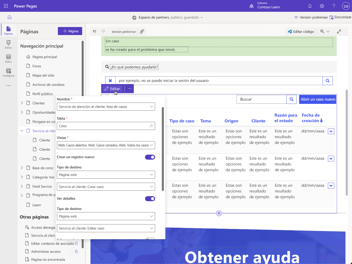 Sin embargo, el verdadero poder de Power Pages radica en la forma en que estos componentes se pueden combinar usando una configuración basada en datos. En las secciones siguientes se explica cómo usar las listas y los formularios combinados y empezar a crear aplicaciones web eficaces y funcionales en lugar de páginas web aisladas.