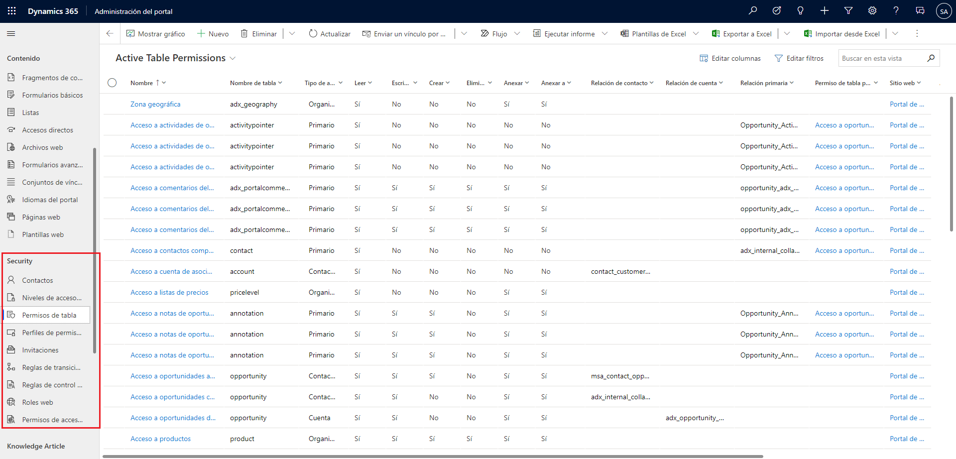 | Permisos de tabla | Los permisos de tabla definen el ámbito y los privilegios de determinadas tablas de Dataverse. Puede asociar cada permiso de la tabla a un rol web; de esta forma se otorga a los visitantes al sitio web acceso configurado a datos. |