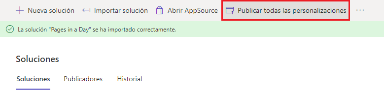 Cuando se complete la importación, seleccione el botón Publicar todas las personalizaciones. Este proceso puede tardar unos minutos.