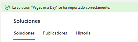 Después de unos minutos, cuando la solución se haya importado correctamente, el banner mostrará un mensaje de éxito similar a la siguiente captura de pantalla.
