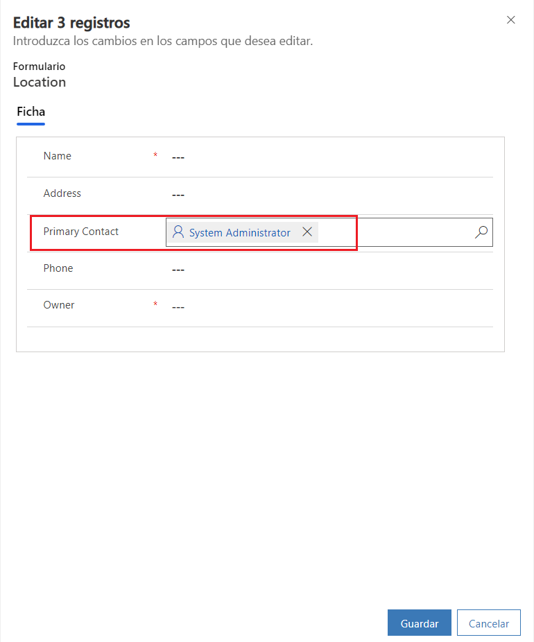 En el campo Primary Contact, seleccione a un usuario y, luego, elija Guardar.