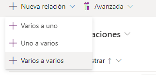 Seleccione la opción Relaciones en el panel Esquema. Seleccione + Nueva relación y Uno a varios.