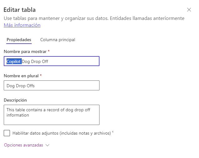 Cuando crea un formulario de este modo, Copilot también crea una nueva tabla de Microsoft Dataverse para los datos recopilados por el nuevo formulario. Esta nueva tabla está disponible para más personalizaciones y automatización a través de Microsoft Power Apps Maker Portal. Todas las tablas que se crean de esta manera tienen el prefijo "Copilot" en su etiqueta. Debido a que es solo la etiqueta, y no el esquema subyacente, puede eliminar este prefijo si lo desea.