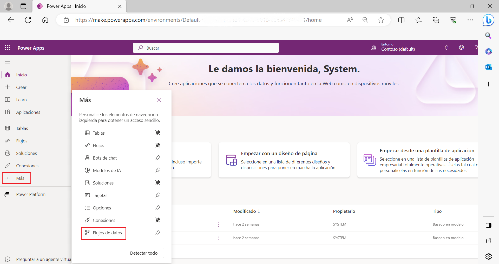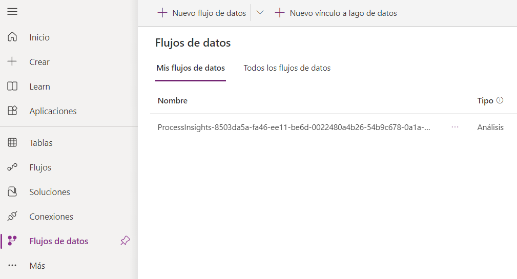 En el menú de navegación de la izquierda, seleccione Más y Flujos de datos en el menú emergente.