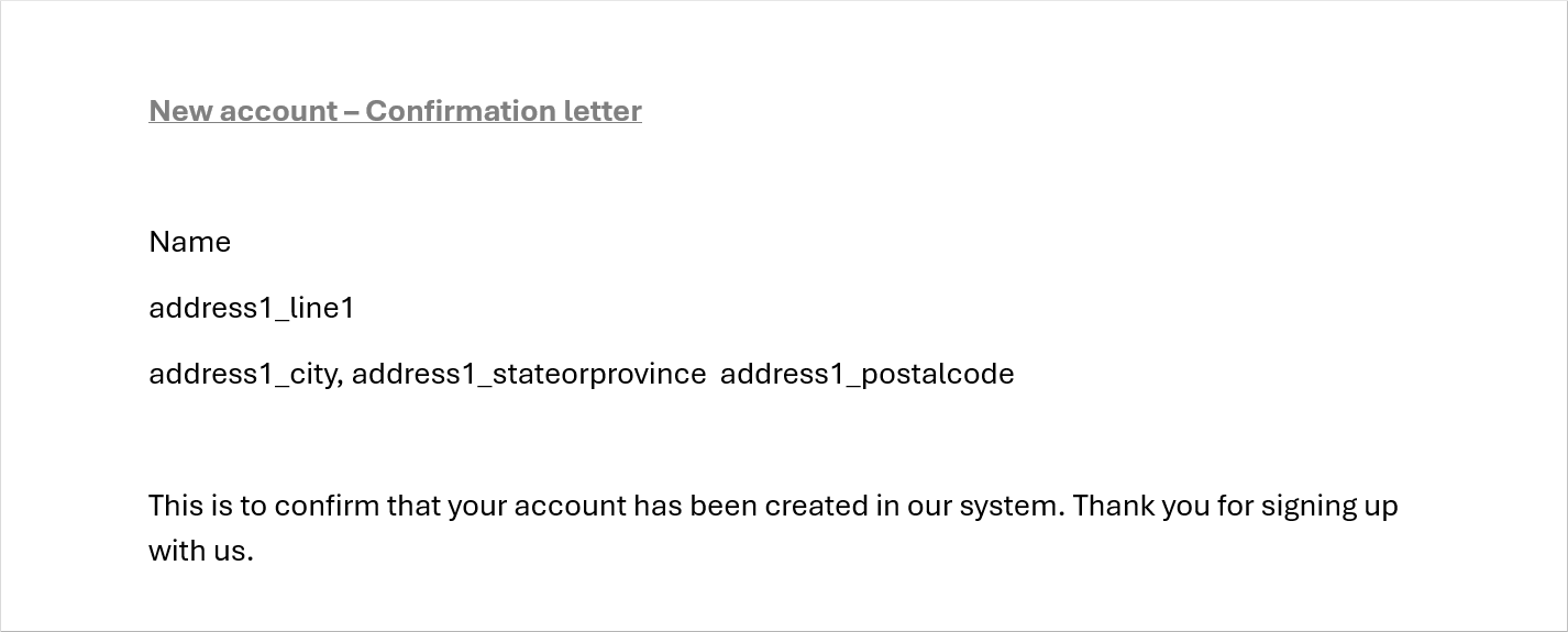 Seleccione, coloque y formatee los campos del documento. El documento podría ser similar a la siguiente captura de pantalla.