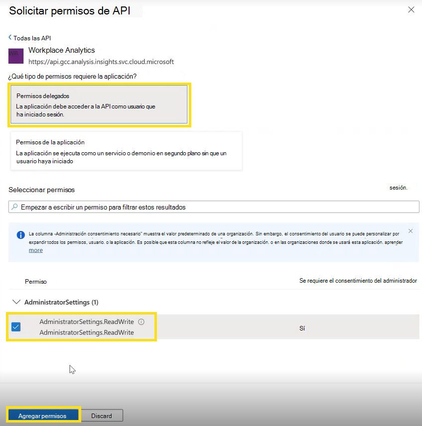 En AdministratorSettings, seleccione AdministratorSettings.ReadWrite.