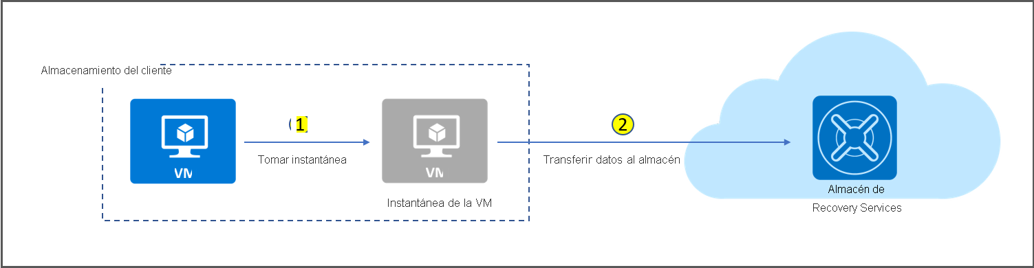 Las instantáneas se almacenan junto con los discos para acelerar la creación de puntos de recuperación y las operaciones de restauración. Como resultado, verá los costos de almacenamiento que corresponden a la retención de instantáneas seleccionada como parte de la directiva de copia de seguridad de máquina virtual.