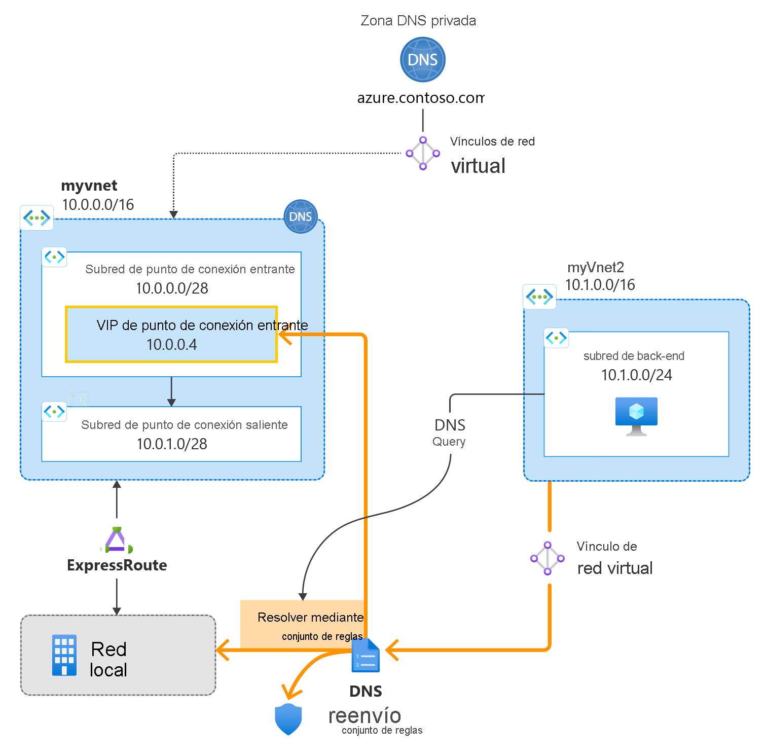 - Zonas privadas de Azure DNS vinculadas a la red virtual donde se implementa la resolución.