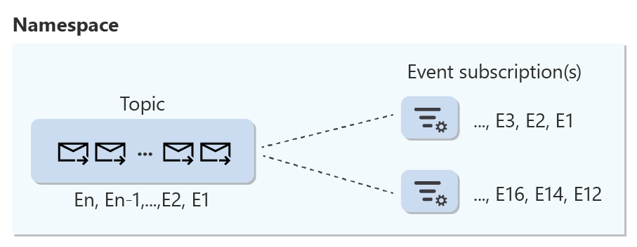 Los temas de espacio de nombres admiten la entrega de extracción y la entrega de inserción. Consulte cuándo usar la entrega de extracción o inserción para ayudarle a decidir si la entrega de extracción es el enfoque adecuado según sus requisitos.