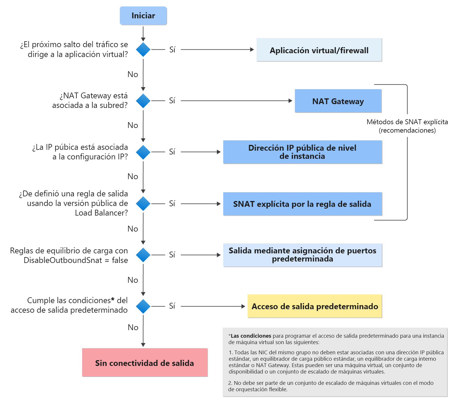 - Las máquinas virtuales de una subred privada todavía pueden acceder a Internet (o a cualquier punto de conexión público dentro de Microsoft) mediante la conectividad saliente explícita.