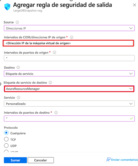 AzureBackup. - Seleccione Agregar para guardar la regla de seguridad de salida recién creada.