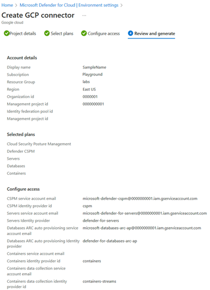Siga las instrucciones de la pantalla para configurar el acceso entre Defender for Cloud y el proyecto de GCP.