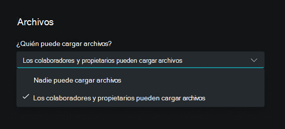 Los propietarios pueden elegir quién puede cargar archivos en la configuración del propietario. Las opciones son: