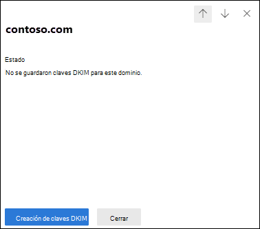 - El valor Status es No DKIM keys saved for this domain (No se guardaron claves DKIM para este dominio).