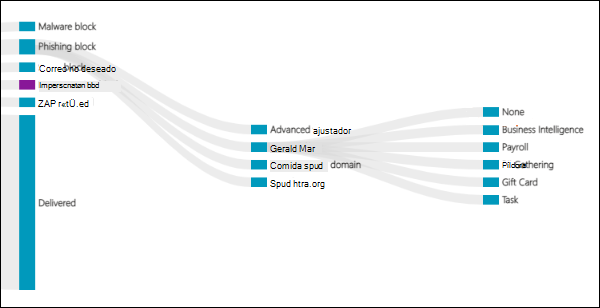 ZAP quita los mensajes de los buzones después de la entrega, por lo que la actividad ZAP no afecta a los recuentos de mensajes en el informe de estado de Flujo de correo. La actividad ZAP afecta a los recuentos de mensajes en el Explorador de amenazas o las detecciones en tiempo real. En Defender para Office 365, use el informe Actividades posteriores a la entrega para comprender el ciclo de vida de ZAP en los mensajes de la organización.