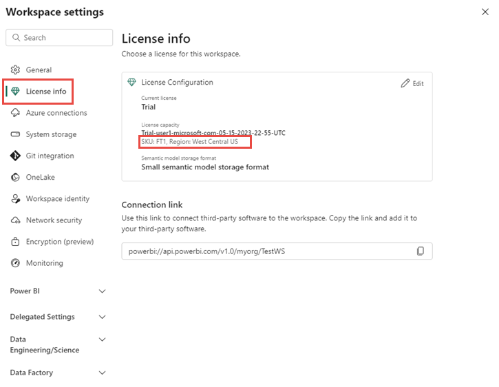 Vaya a Configuración del área de trabajo>Información de licencia