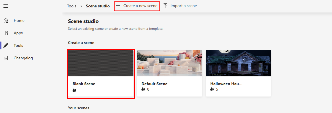 Puede ver la escena creada en la sección Tus escenas de Scene Studio. Además, puede compartir y exportar la escena.