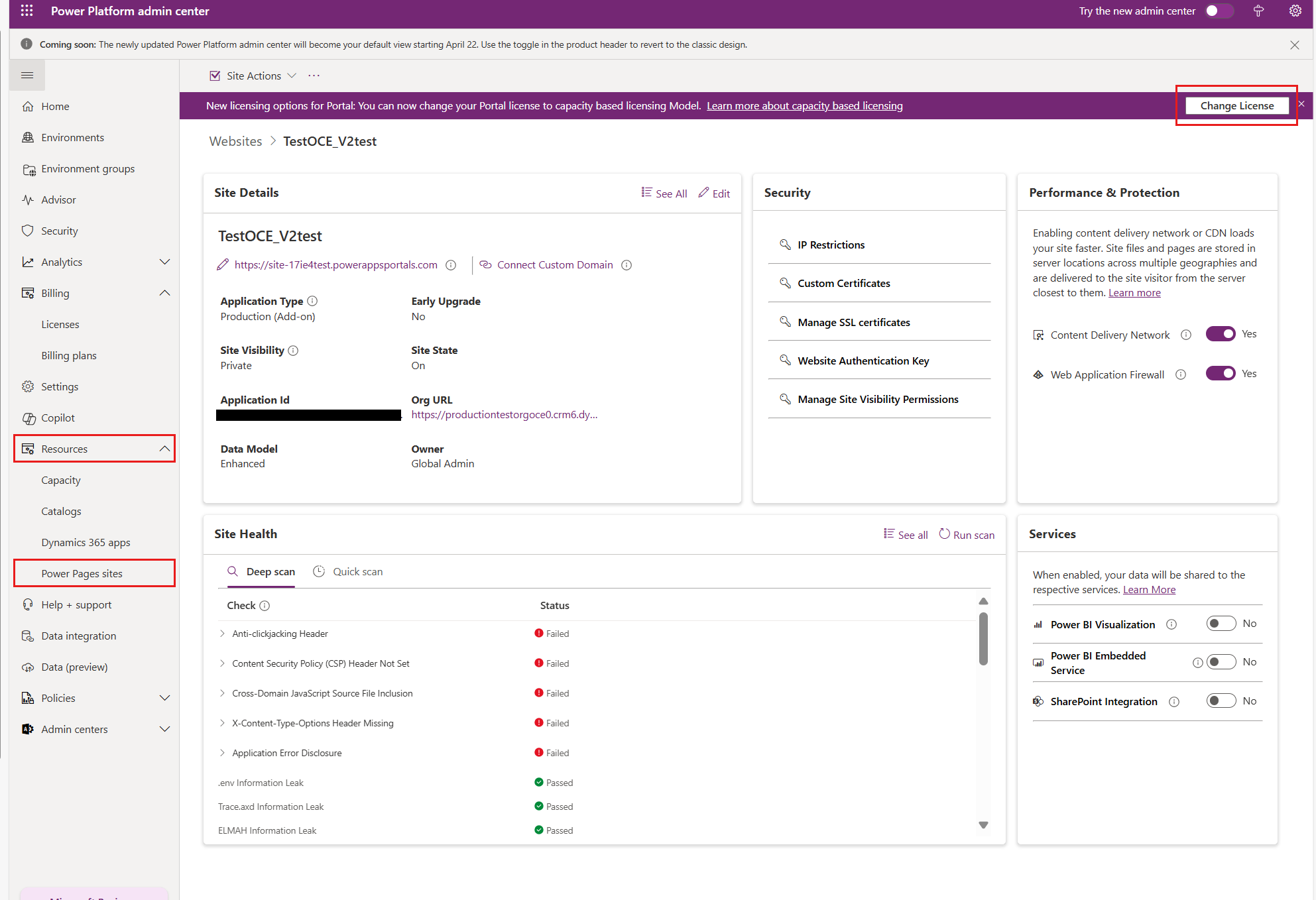 Puede convertir su licencia de Power Pages existente a modelo de licencias basado en la capacidad. Para cambiar su licencia de portal a un modelo basado en capacidad: