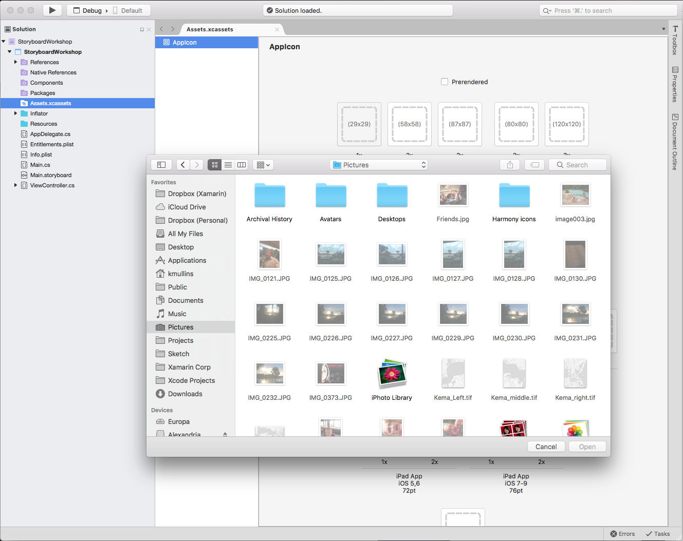 Una vez que se ha diseñado el icono y se ha guardado con los nombres y los tamaños de archivo necesarios, Visual Studio para Mac facilita su asignación a los activos de imagen para su uso en Xamarin.Mac.