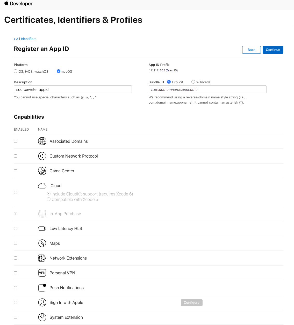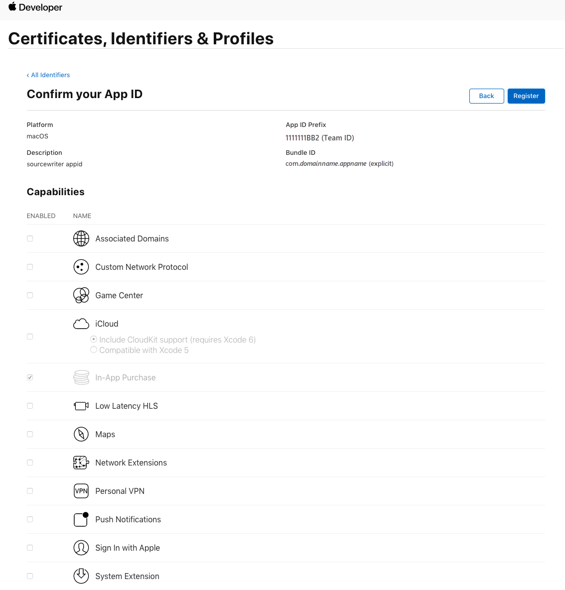 - Registrar el identificador de la aplicación de Mac: el desarrollador tendrá que seguir estos pasos para cada aplicación que escriba.