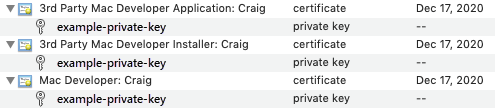 - el certificado de distribución de instaladores de Mac, para firmar el instalador.