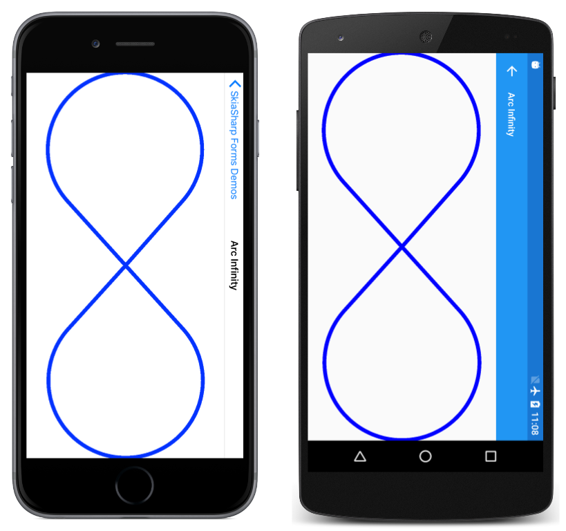 El controlador PaintSurface de la clase ArcInfinityPage coloca el signo infinito para que el punto (0, 0) se coloque en el centro de la página y escale la ruta de acceso al tamaño de pantalla: