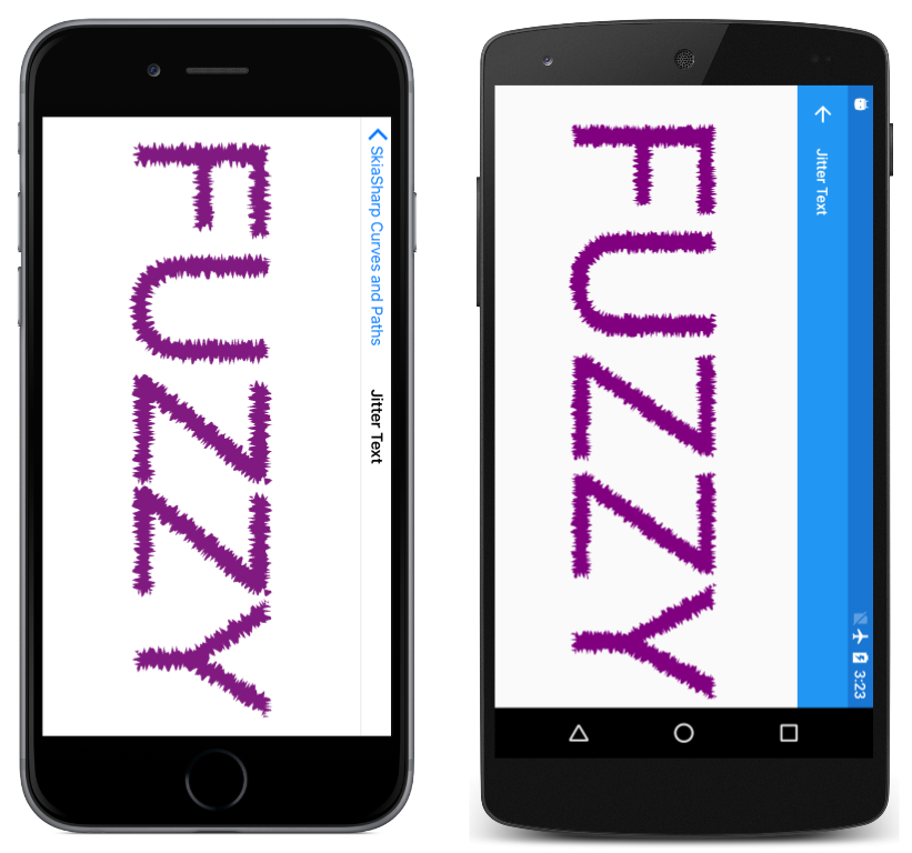Como alternativa, puede establecer el objeto SKPathEffect en el objeto SKPaint antes de medir el texto y centrarlo en la página. Sin embargo, en ese caso, los puntos animados y guiones provocan cierta variación en el tamaño del texto representado, y el texto tiende a vibrar un poco. (¡Pruébelo!)