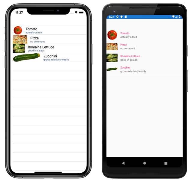 Para más información sobre la personalización de celdas en ListView, vea Personalización de la apariencia de las celdas de ListView.