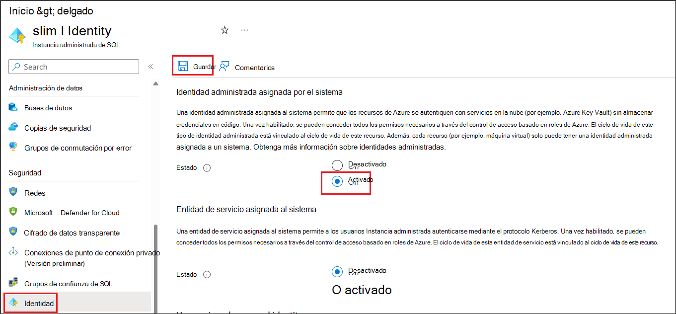 - Identidad administrada asignada por el sistema o por el usuario